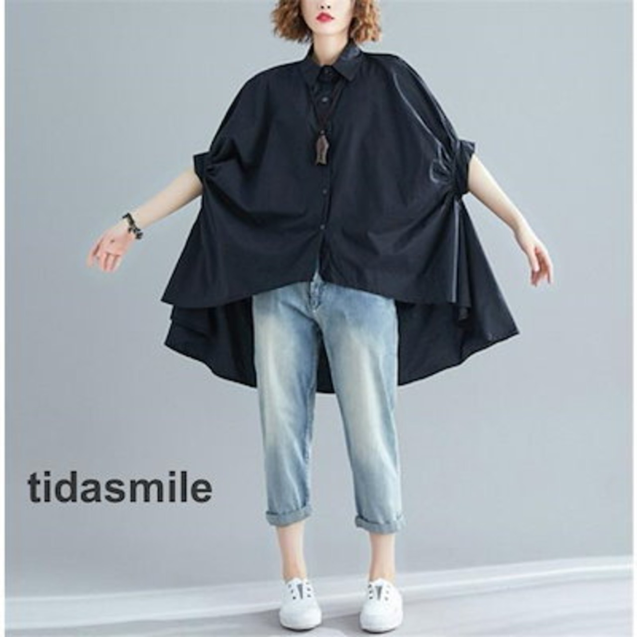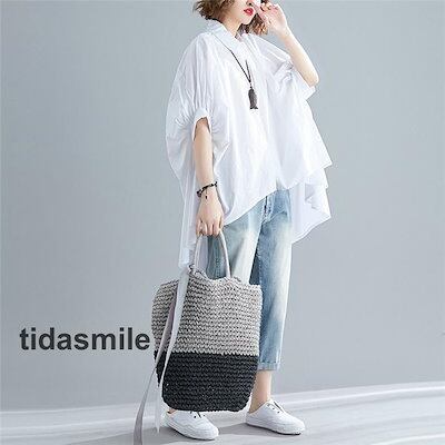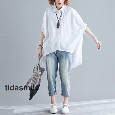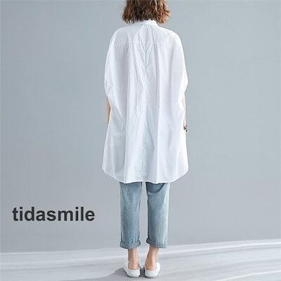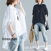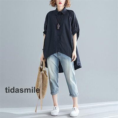 チュニック シャツワンピース ロングシャツ レディース 半袖 春 夏 チュニックシャツ 大きいサイズ 無地 おしゃれ ロングワンピー 不規則 体型カバー 折襟