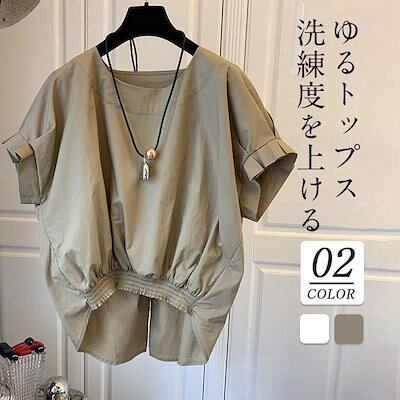 ブラウス レディース ラウンドネック 後ろリボン 半袖 ゆったり エレガント 上品 オシャレ オフィス きれいめ トップス 夏物 無地 きれい