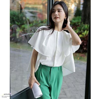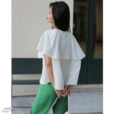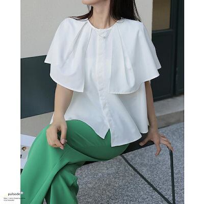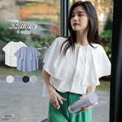 ブラウス ケープ レディース トップス ビッグカラー 半袖 ラウンドネック フレア フリル オフィス カジュアル きれいめ 大人 無地 上品 フォーマル ストラ
