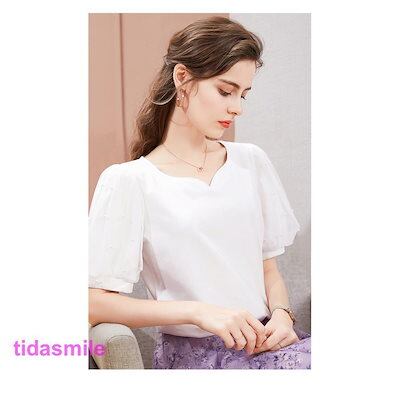 Tシャツ レディース 40代 春 夏 半袖 カットソー 綿 ブラウス Vネック 丸首 トレーナー おしゃれ ゆったり 無地 プルオーバー カジュアル 30代 50代