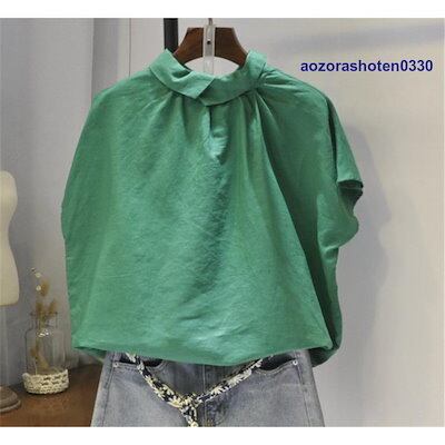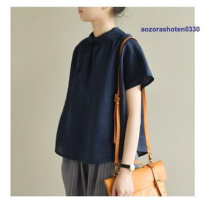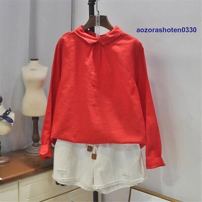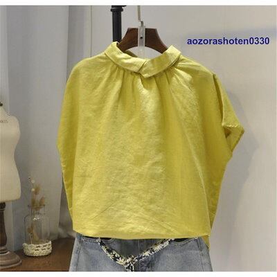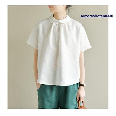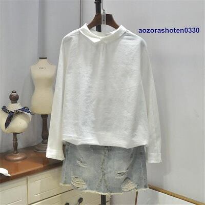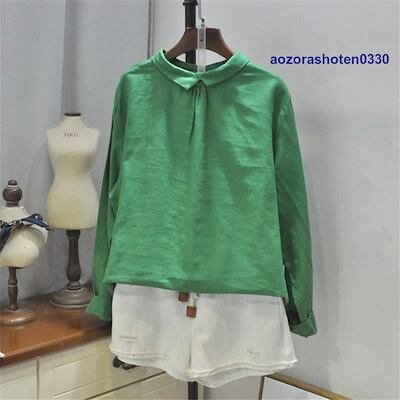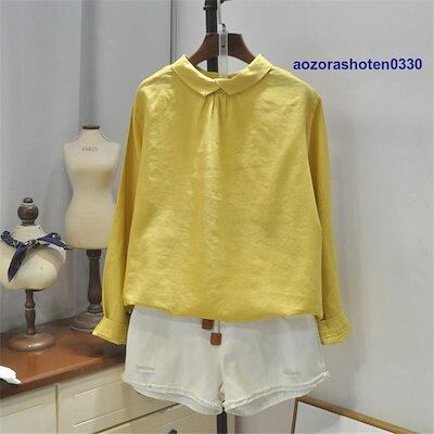 シャツ ブラウス トップス プルオーバー シャツブラウス tシャツ レディース 春 夏 丸首 折り襟 半袖 長袖 無地 綿麻混 リネン シンプル 体型カバー 秋 夏