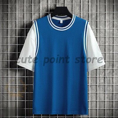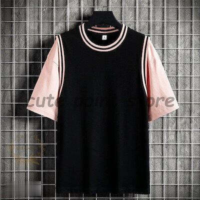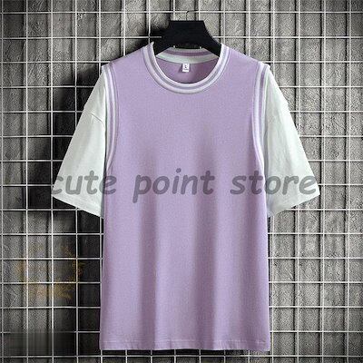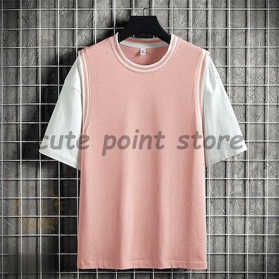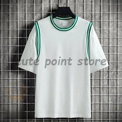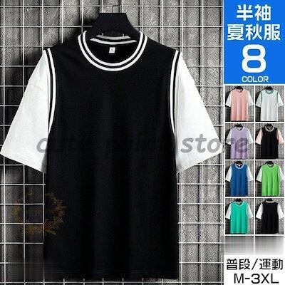 半袖tシャツ メンズ レディース 五分袖 ティーシャツ ジャージ トップス スポーツ 無地 切り替え 重ね着風 運動会 父の日