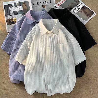 レディース デザイン 半袖 ゆったり アイスシルク シャツ 無地 ストライプ 薄手 大きいサイズ 開襟シャツ カジュアル ブラウス