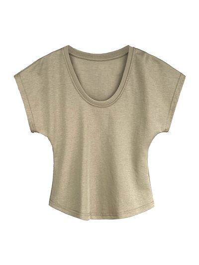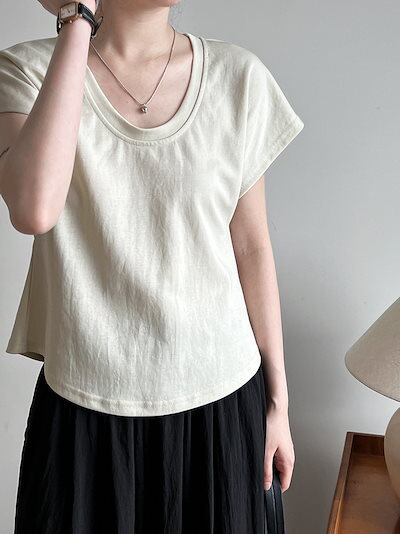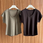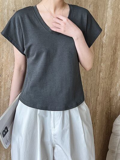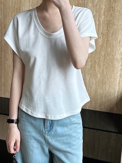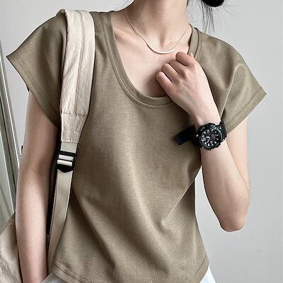 Uネックトップス 半袖 夏服 着痩せ Tシャツ カジュアル レディース服 ブラウス アンダーウェア