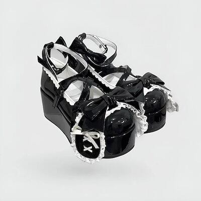 24新作 Lolita靴 靴ハイヒール厚底ブラックバレエ風靴オリジナルロープリンセス靴 メガ割 スタイルアップヒールパンプス