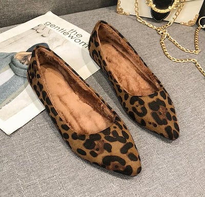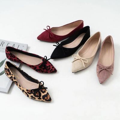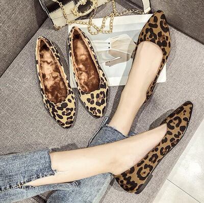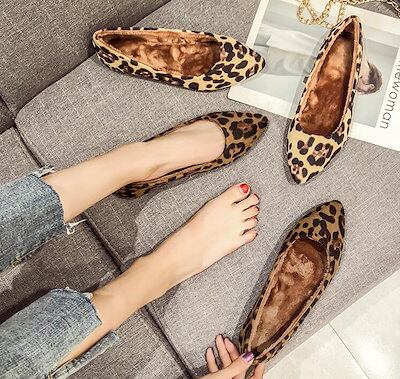 パンプス 痛くない オフィス ボア もこもこ ローヒール ぺたんこ バレエシューズ ヒョウ柄 豹柄 フラットパンプス ポインテッドトゥ とんがり 走れる ぺたんこ クッション入り フラットシューズ 通