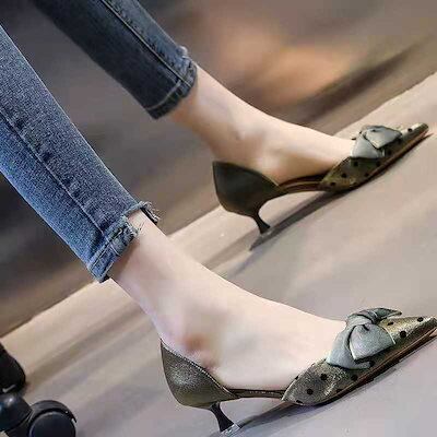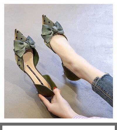 3日以内出荷ヒールパンプス レディース ローリボンシングルシューズ23新作細ヒールヒールヒール優しいローヒール通勤 韓国ファッション サンダル さんだる
