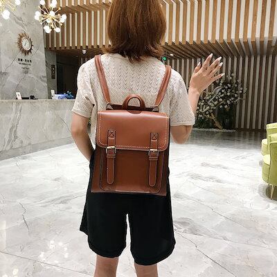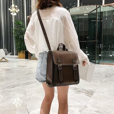 新しいファッショントレンディなレザーダブルバックパックカジュアルレトロバックパック様式化された学生スクールバッグレディースバックパック