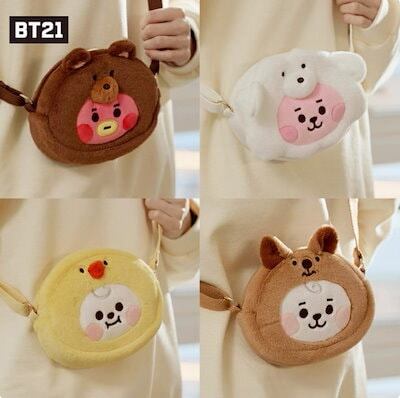 BT21BTS BABY ぬいぐるみフェイスシェイプクロスボディバッグレディースショルダーバッグ多用途通勤収納バッグ
