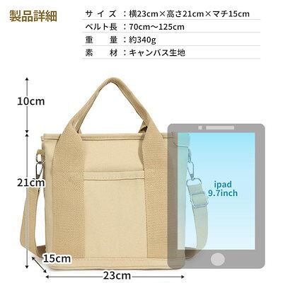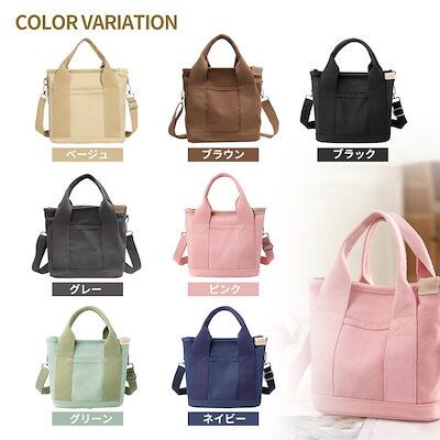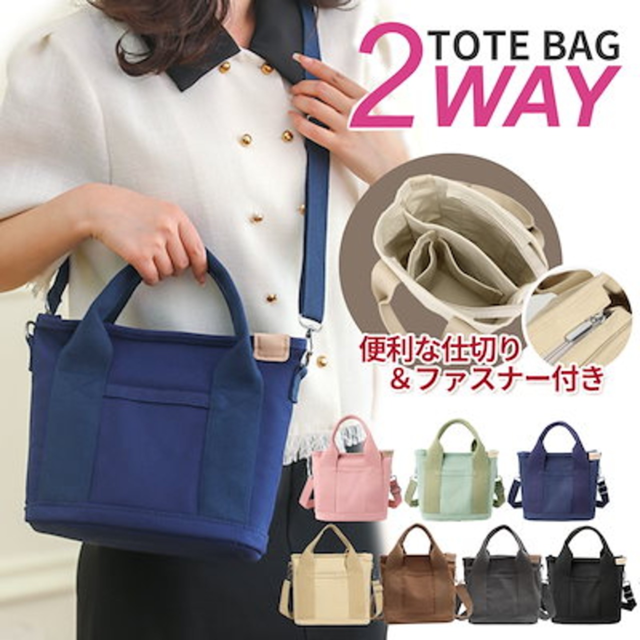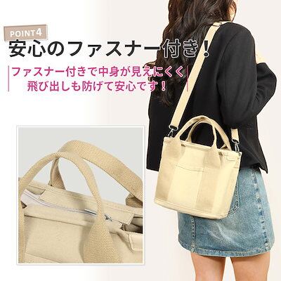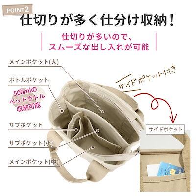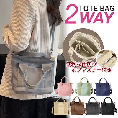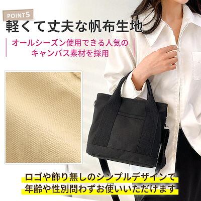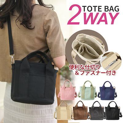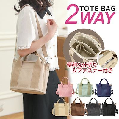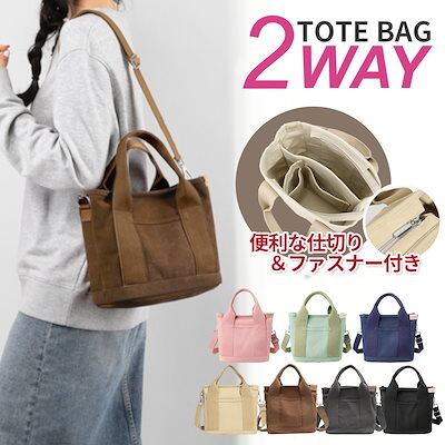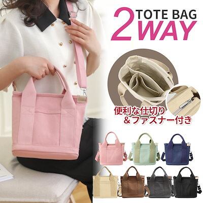 トートバッグ ミニ 帆布 レディース 仕切り ポケット多い 2WAY ショルダー 付き ファスナー付き キャンバス 小さめ 大容量 通勤