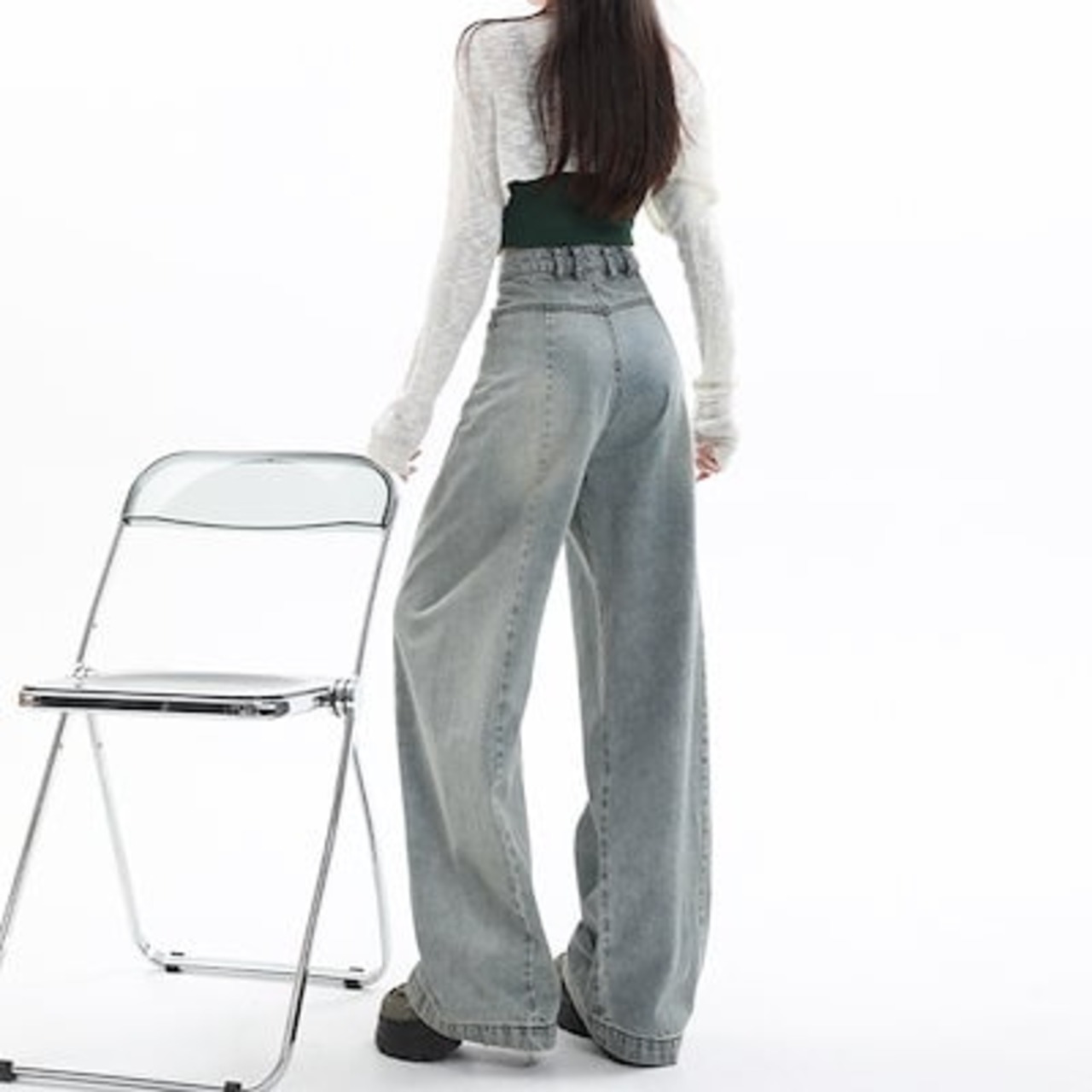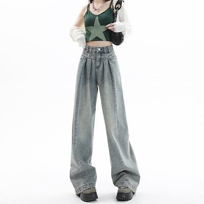 デニムかっこいい!スラックスパンツ2025春の新作ハイウエスト デニムパンツ レディース ワイドレッグ 見えやせ ハイウエストゆったり 垂れ感 おしゃれ