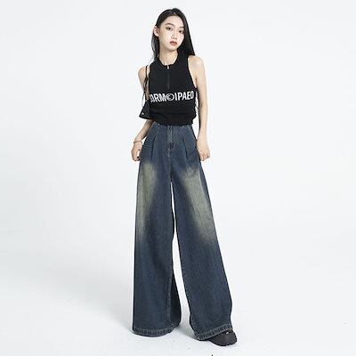 デニムかっこいい!スラックスパンツ2025春 マイクロラッパ デニムパンツ おしゃれ パンツ レディース 垂れ感 ワイドパンツ ハイウエストゆったり見えやせ