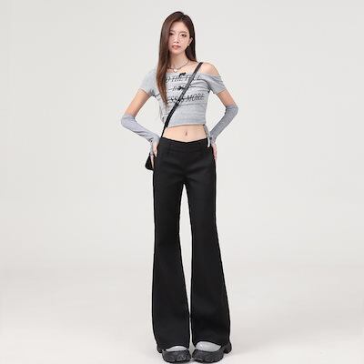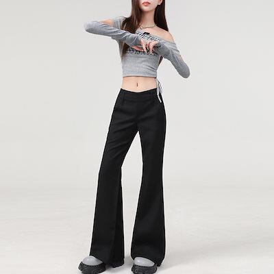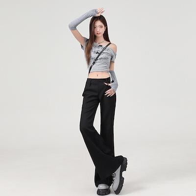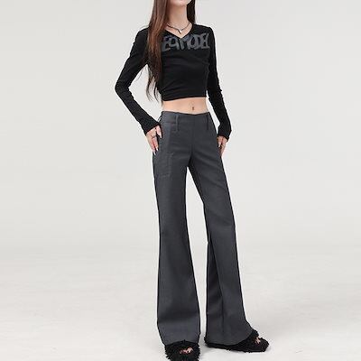デニムかっこいい!スラックスパンツ2025春 マイクロラッパ デニムパンツ おしゃれ パンツ レディース 垂れ感 ワイドパンツ アメリカン ゆったり見えやせ カジュアルパンツ