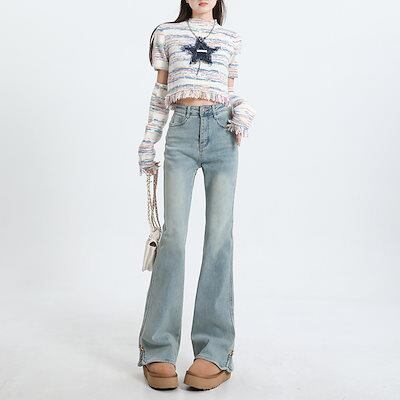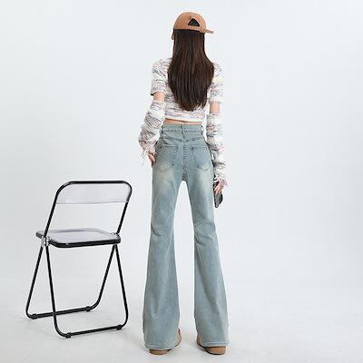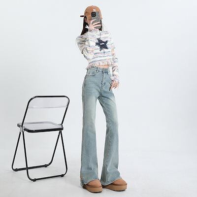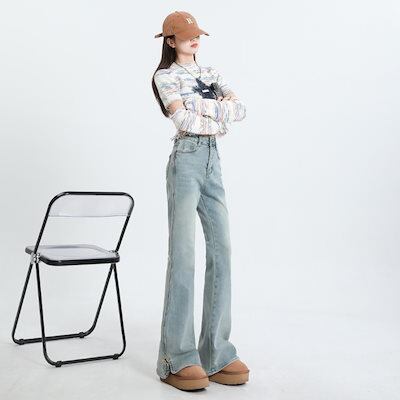 デニムかっこいい!スラックスパンツ2025春 ワイドパンツ デニムパンツ カジュアル ハイウエストゆったり見えやせ マイクロラッパ パンツ レディース