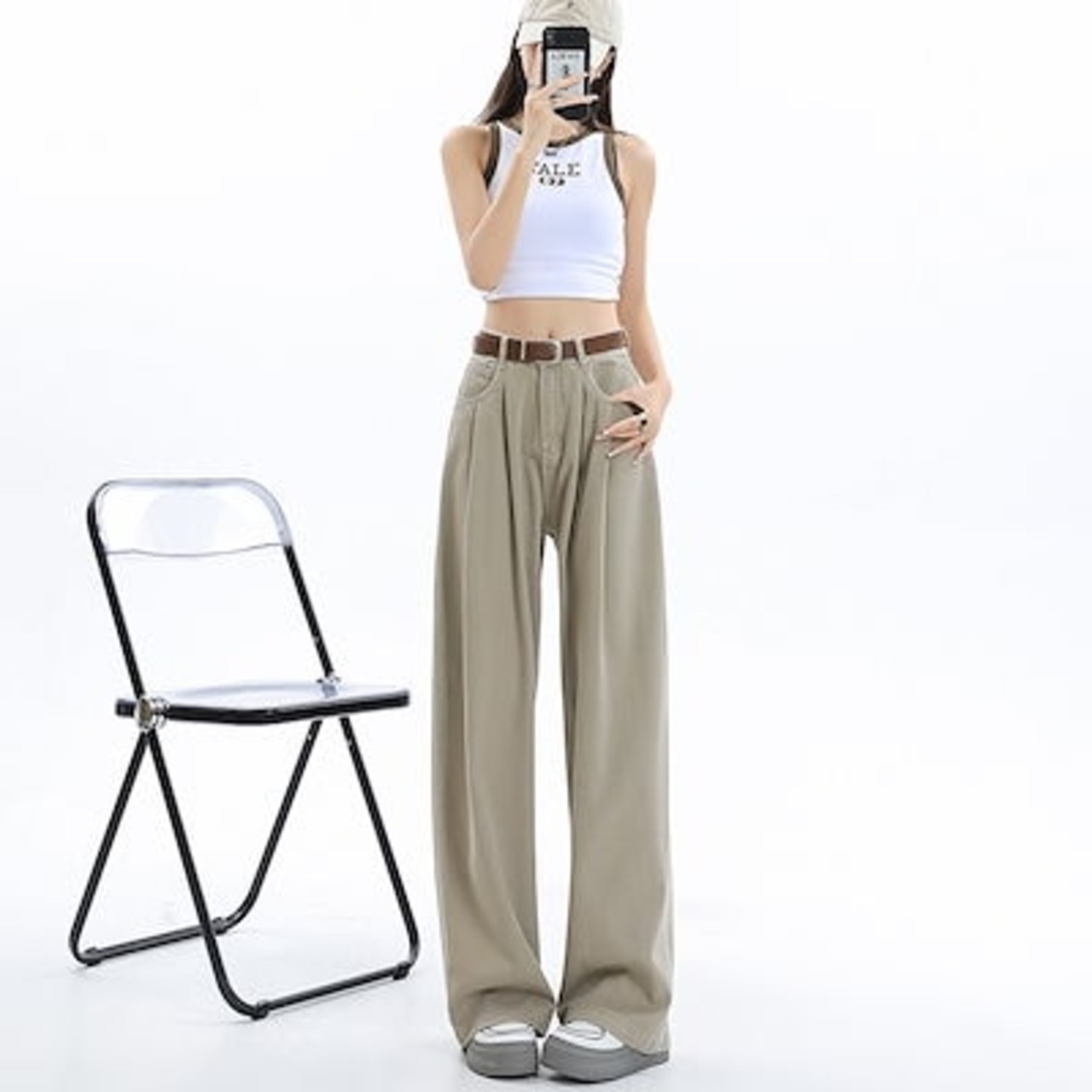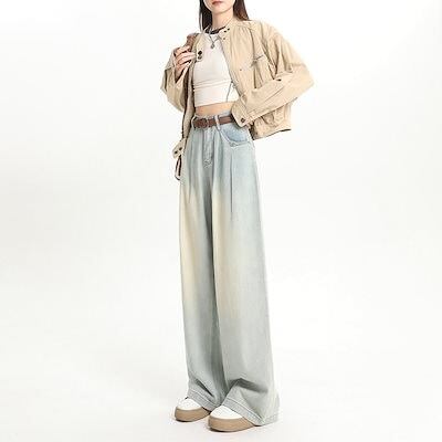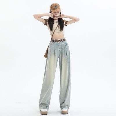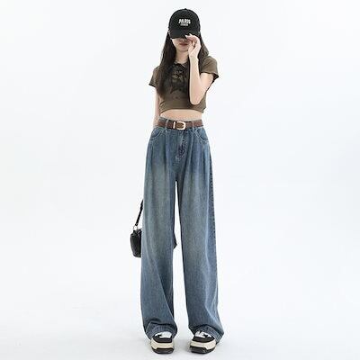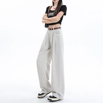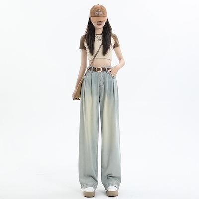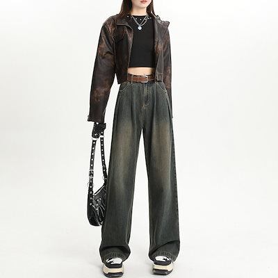 デニムかっこいい!スラックスパンツ2025春 しわだらけのワイドパンツ デニムパンツ おしゃれ ハイウエストゆったり見えやせ パンツ レディース