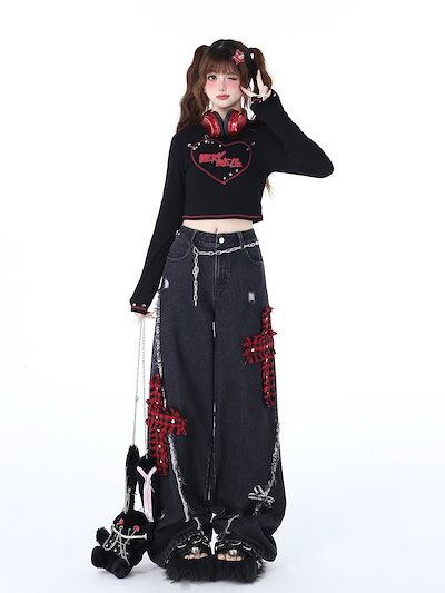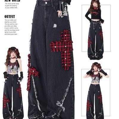 2024秋冬 デニムパンツ ボトムス ジーンズ ファッション系スタイル ゆるダボ ジーンズ シルエットレディース 加工 カジュアル 春夏 メンズライク