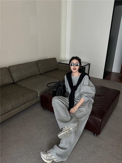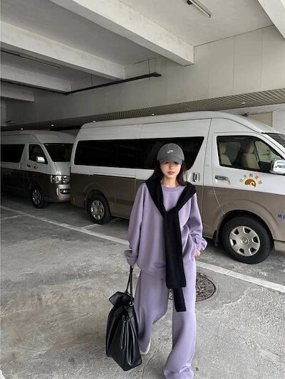 2024 秋冬 韓国 かわいい レディース 無地 普段使い長袖トップスレトロ 2点セット 黑白パーカーブルサイズ丈春カジュアルスポーツファッション系通学学生袖お出かけセットアップシルエット上下羽織り