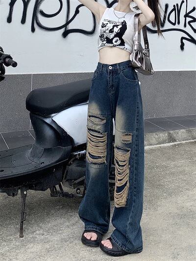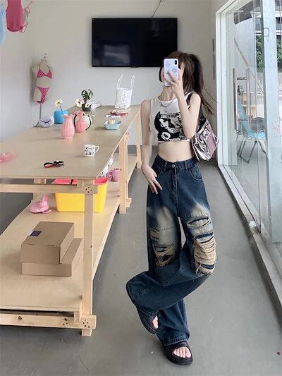 2024春夏 デニムパンツ ボトムス ジーンズ ファッション系スタイル ゆるダボ ジーンズ シルエット加工 カジュアル メンズライク