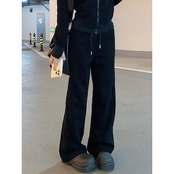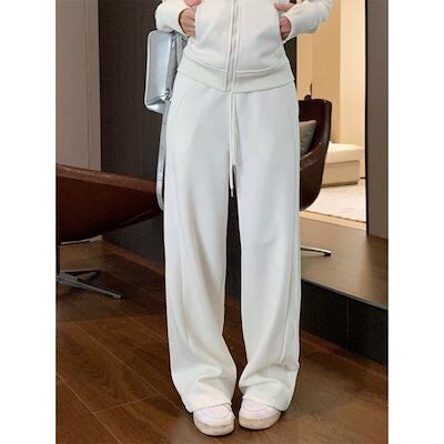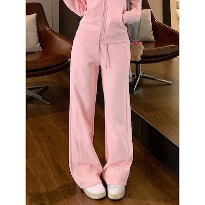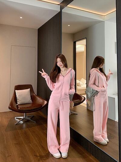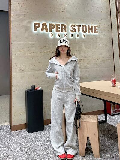 2024 秋冬 韓国 かわいいレディー 無地 フード付き長袖アウターレトロセット黑白フーディーブルサイズ丈トップス春カジュアルスポーツファッション系通学学生袖お出かけアップシルエットトラック羽織り上下