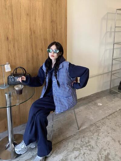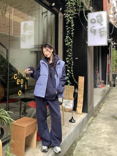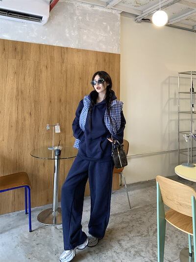 2024 秋冬 韓国 かわいい レディース 厚手裹起毛 長袖トップスレトロ無地 セットアップ黑白パーカーブルサイズ丈春カジュアルスポーツファッション系通学学生袖お出かけアップシルエットトラック