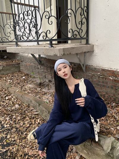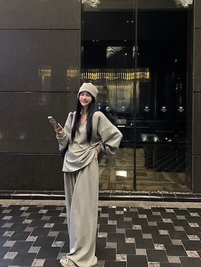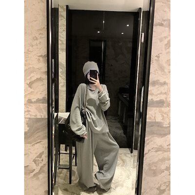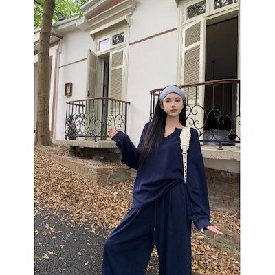 2024 秋冬 韓国 かわいい レディース 無地 Vネック長袖トップスレトロセットアップ黑白パーカーブルサイズ丈春カジュアルスポーツファッション系通学学生袖お出かけアップシルエットトラック