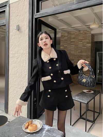 2024秋冬 セットアップ レディース チエレガント着回し きれいめ 韓国っぽ トップス ショートミニ OL 通勤丈 オフィスコートファッション系女っぽ カジュアル大人っぽ 羽織りフレンチ 型春襟