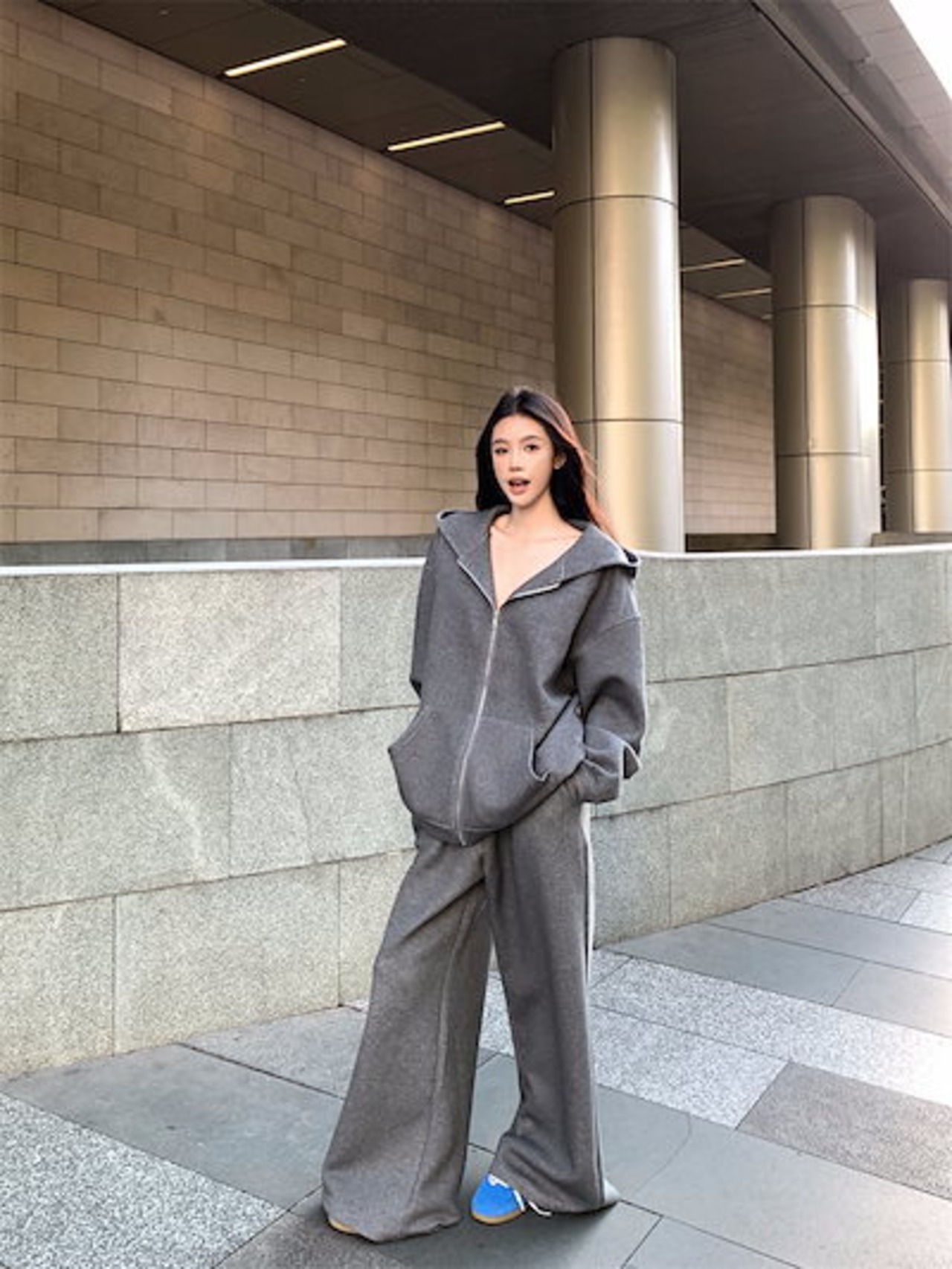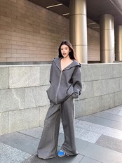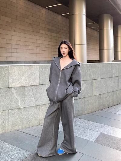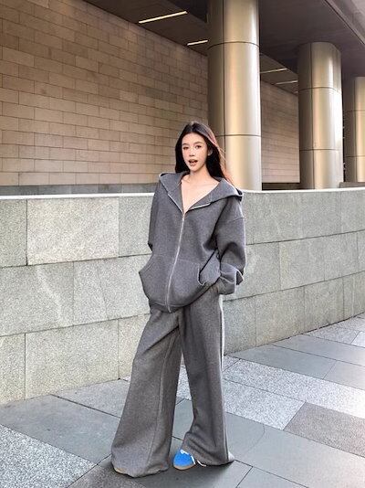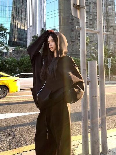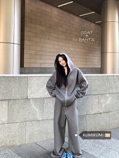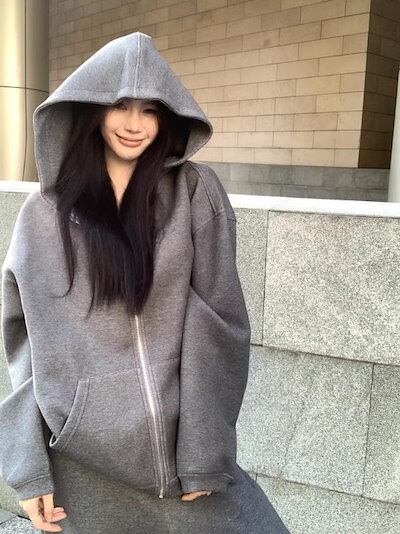 2024秋冬 韓国 かわいい レディース 無地 フード付き長袖アウターレトロセット黑白フーディーブルサイズ丈トップス春カジュアルスポーツファッション系通学学生袖お出かけアップシルエットトラック羽織り