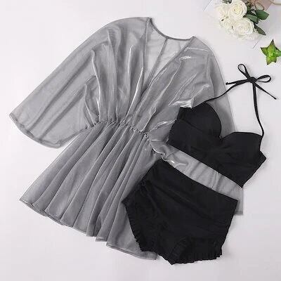 2025春夏新作 水着 レディース 体型カバー 韓国ファッション 競泳 3点セット 新品 韓国 水着セット ビキニ フリル レース