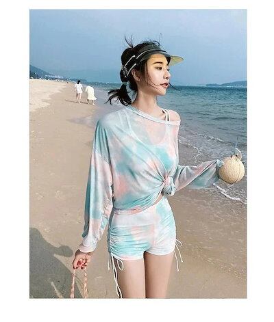 2025春夏新作 水着レディース ビキニ 水着 スポーツ水着 紫外線対策 3点 セット 高校 日焼け防止 大きいサイズ