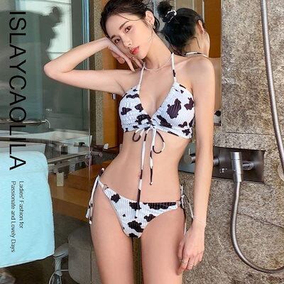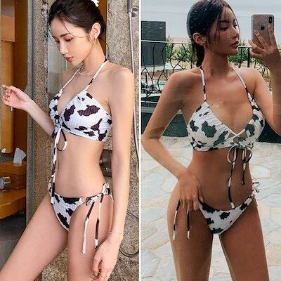 2025春夏新作 ディララ ビキニ セット 水着 ホルターネック ブラジリアン スイムドレス リボン レオパード 三角 パッド入り ワイヤーなし レディース