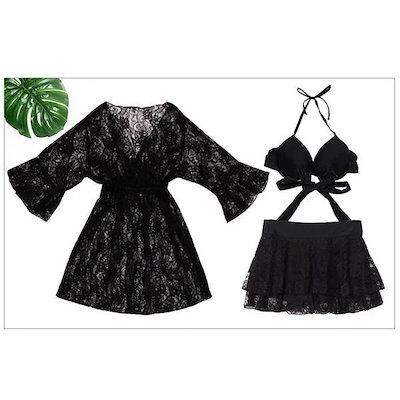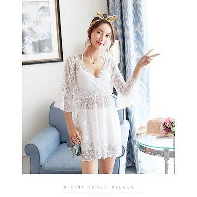 2025春夏新作 レディース 水着3点セット 体型カバー 無地 韓国風 ハイウエスト オフショルダー バンドゥビキニ