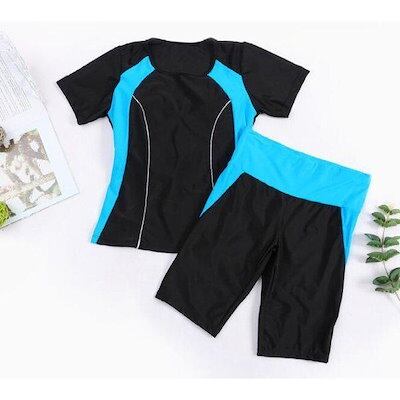 2025春夏新作 フィットネス 水着 レディース セパレート 半袖 競泳水着 2点セット 体型カバー 大きいサイズ 水