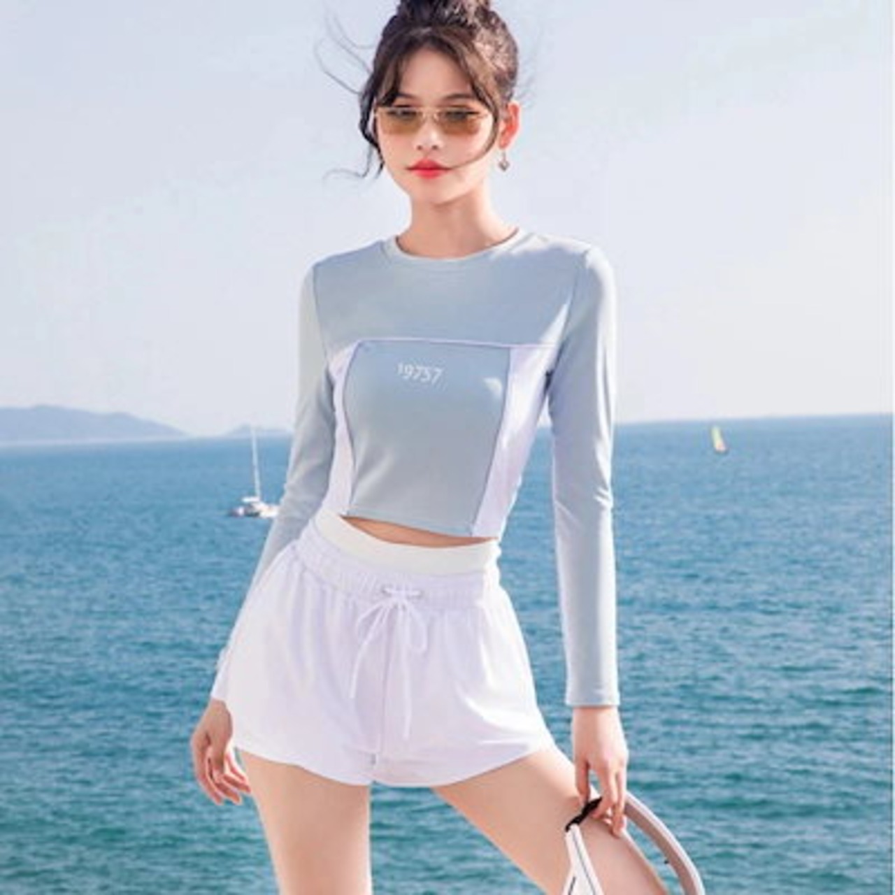 2025春夏新作 ブランド専門水着レディース長袖日焼け止め上下セットアップ二点韓国ファッションアウトドアスポーツ