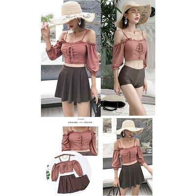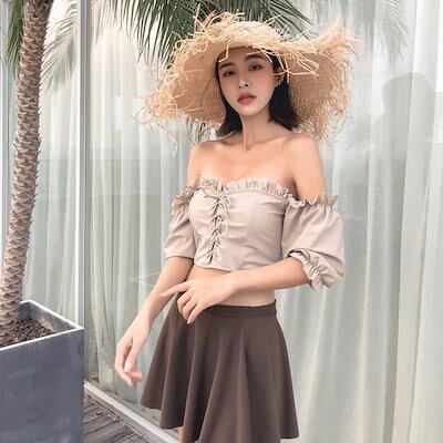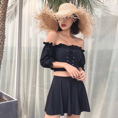 水着 水着 人気 ミニスカート レディース 2点セット 新品 スイムウェア セパレート レースアップ 2025 ビキニ オフショルトップス オフショルダー 大 仕様 スイミング 体型カバー