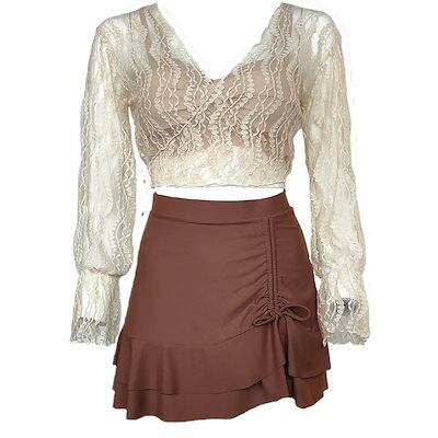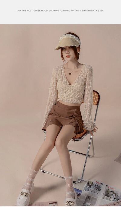 2025 春夏 ビキニ 水着セットレース長袖ラッシュガード 温泉スイミング 体型カバー可愛いセクシー 旅行 水着 レディース 体型カバー