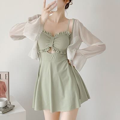 2025 春夏 水着 パッド付き 体型カバー 3点セット 小胸 バンドゥ 旅行 水着 レディース 体型カバー