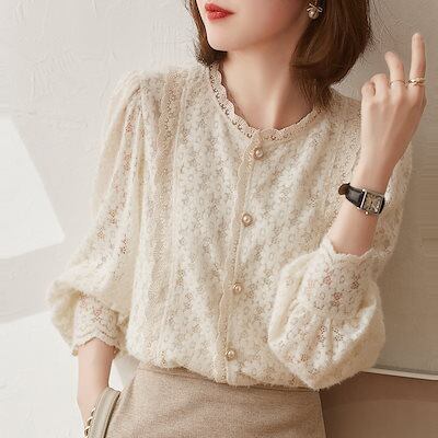 今っぽシアーシャツ 2025ファッション シャツ レディース 秋冬の新作フレンチレース OL 通勤 ブラウストップス
