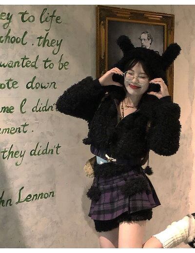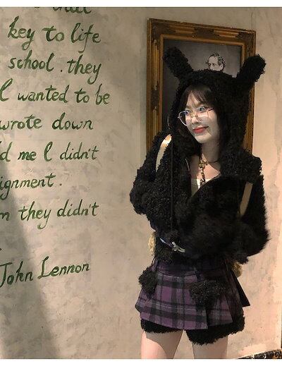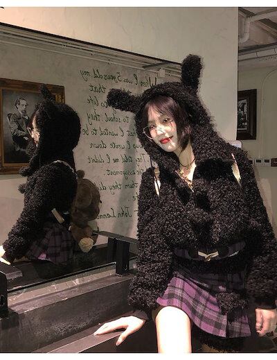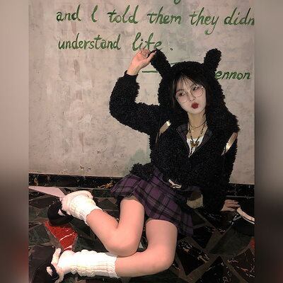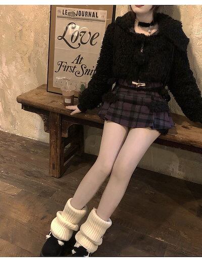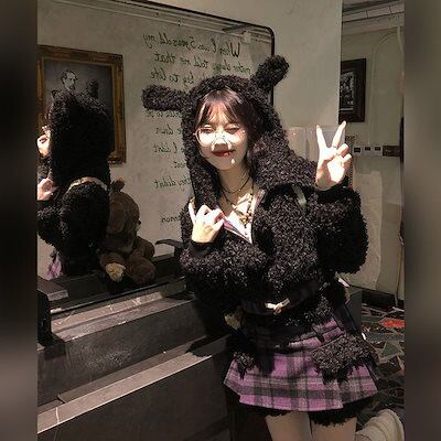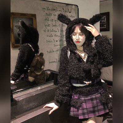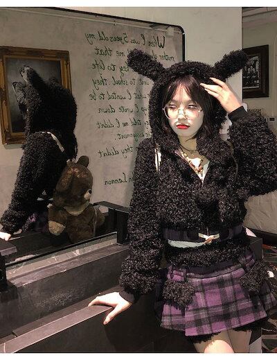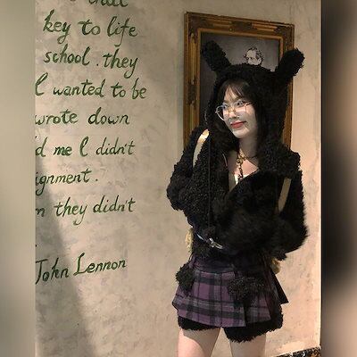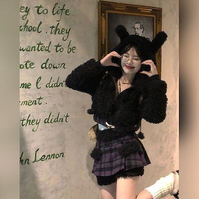 冬の新作気品 セット服 レディース ラビット耳ショートジャケット+パッチワークデザイン感ハーフスカートセット2点セットファッション セットアップ