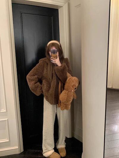 福袋 2025秋冬新作かわいいクマ アウター フリースジャケット ファッション モコモコトップス ゆったり 厚手 通学 コート レディース 暖かい 寒さ対策 通勤