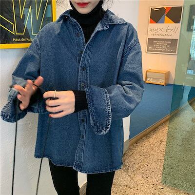 コーデに役立つ!デニムジャケットファッション 早秋 ゆったり デニムコートシャツ アウター レディース トップス デザインデニムジャケット