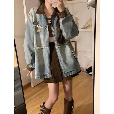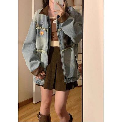 コーデに役立つ!デニムジャケットファッション アメリカンレトロ デニムコートレディース トップス ins デザインデニムジャケット