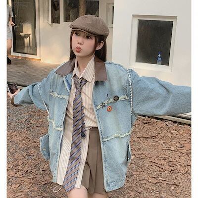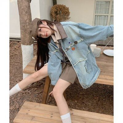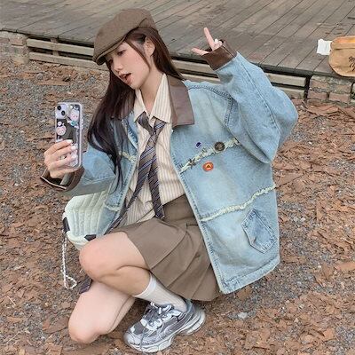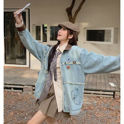 コーデに役立つ!デニムジャケットファッション アメリカンカレッジレトロカジュアル デニムコートレディース トップス ins デザインデニムジャケット