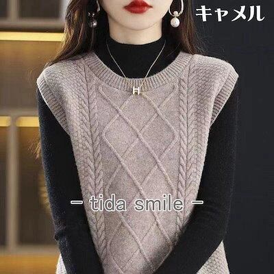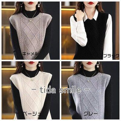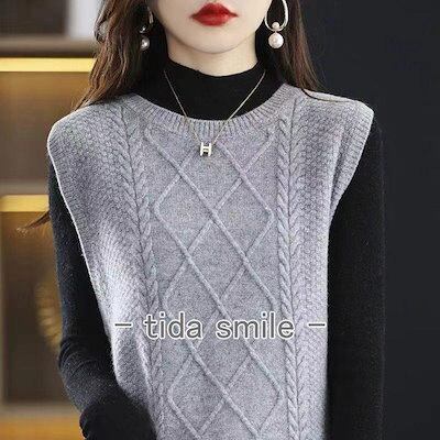 ニットベスト レディース トップス 無地 クルーネック 女性 ノースリーブ セーター Uネック コーデ カジュアル 女性 おしゃれ ファッション 春