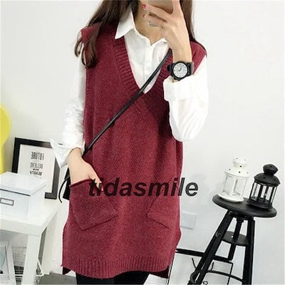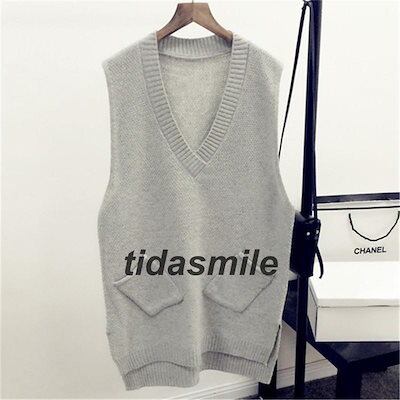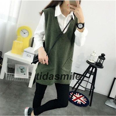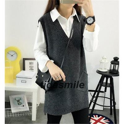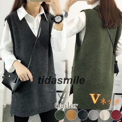 ベスト ニットベスト レディース Vネック ロング丈 チョッキ トップス ノースリーブ ゆったり プルオーバー おしゃれ 通学 通勤 オフィス