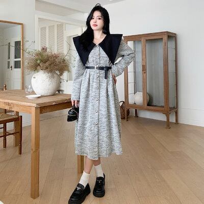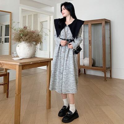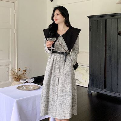 フレンチシック長袖ワンピース レディース 2025新品追加 デザイン感 カレッジ ファッション