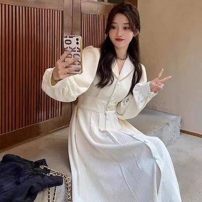 新品追加 コーデュロイワンピース秋冬2025新作フレンチブレザーカラー レディース カレッジ ファッション