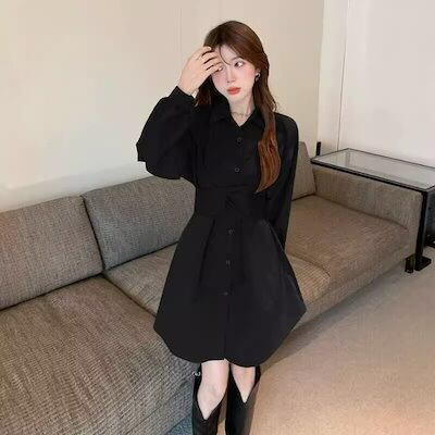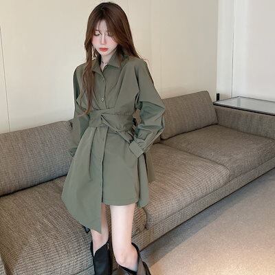 2025年新作フレンチシャツワンピース レディース春秋 カレッジ レディース ファッション 新品追加