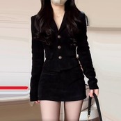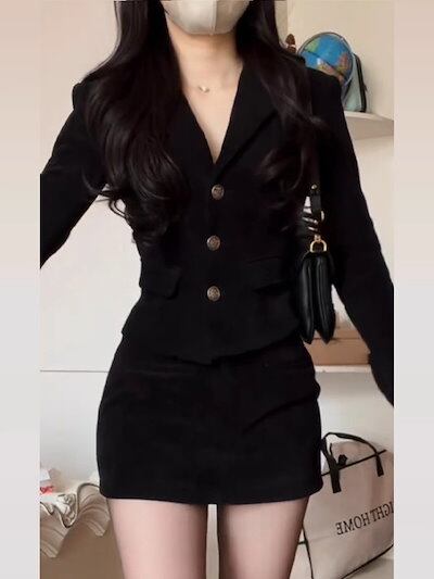 ブラック スーツワンピース2025新作秋服 長袖 レディース ファッション 新品追加セットアップスカート