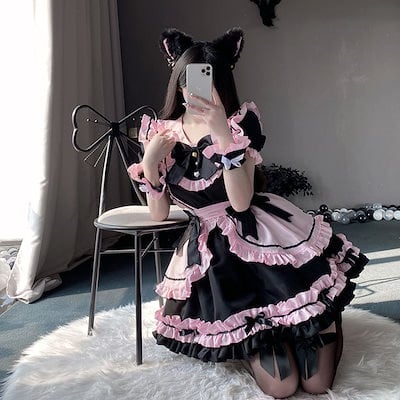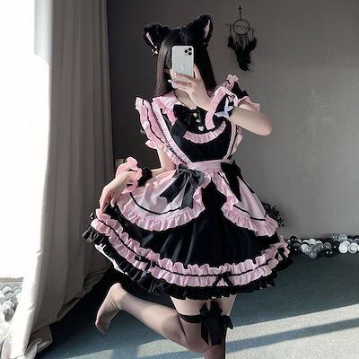 衣装ロリータの優しい ハロウィン コスプレ衣装 ワンピースアニメ ピンクのメイド服 仮装 洋服