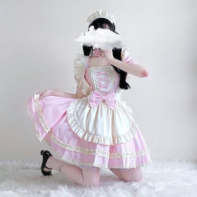 メイドワンピース二次元かわいいロリータピンク ハロウィン コスプレ op メイド服 仮装 洋服